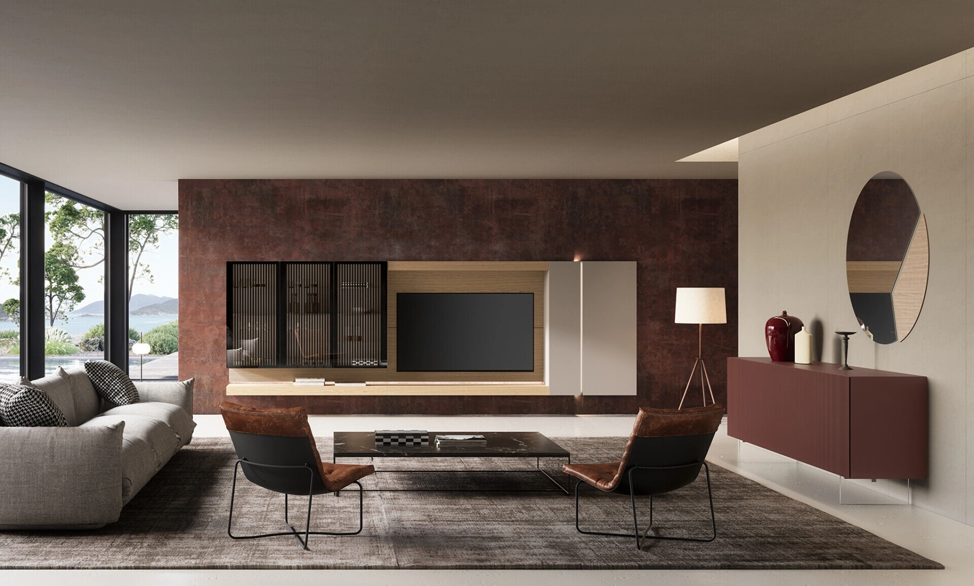 Per soddisfare le eterogenee esigenze abitative di ciascuno, brand mette a disposizione dei suoi clienti un ricco catalogo Pareti Attrezzate moderne estremamente funzionali e contraddistinte da un tocco di stile. La Parete Attrezzata Soggiorno Lucifer con schienale Quercia di Voltan nell'immagine possiede componibilità su misura e diverse possibilità di personalizzazione: scopri la parete attrezzata qui presente e contattaci per maggiori info e preventivi. Impreziosisci i tuoi interni con le Pareti Attrezzate moderne di Voltan: nel nostro punto vendita troverai mobili e oggetti accessori di design, in materiali di prima scelta e delle migliori marche.